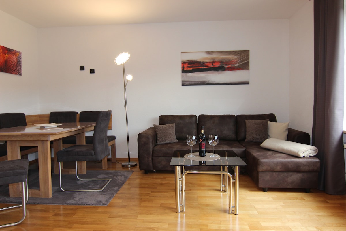 „Ankommen, abschalten und sich wie zu Hause fühlen!“ Genieße deine Auszeit in einer großzügigen, modernen Wohnung mit Balkon und vielen liebevollen Details. Ob entspannte Abende, produktives Homeoffice oder einfach ein gemütlicher Rückzugsort – hier findest du alles, was du brauchst.