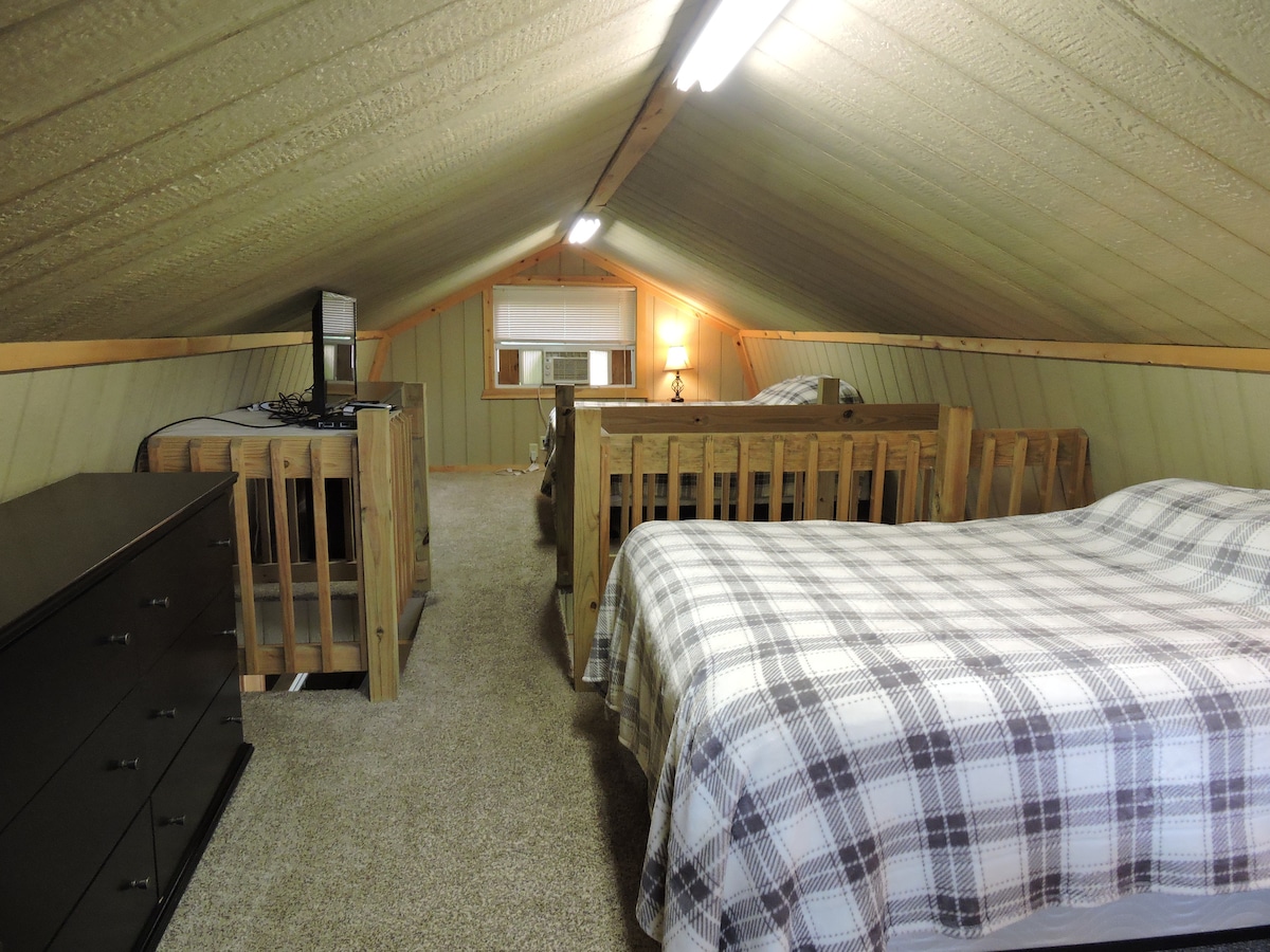 Vieni a visitare il nostro chalet pulito e accogliente con una camera da letto sulle colline boscose della contea di Guernsey, in Ohio, e rilassati sull'ampia terrazza ascoltando i suoni della natura, fai una passeggiata sulla proprietà di 19 acri o resta dentro e chiedi ad Alexa di riprodurre i tuoi brani preferiti o di guardare un film di successo in streaming sulla TV 4K UHD da 65" con audio surround Dolby Atmos 7.2.4. A te la scelta.