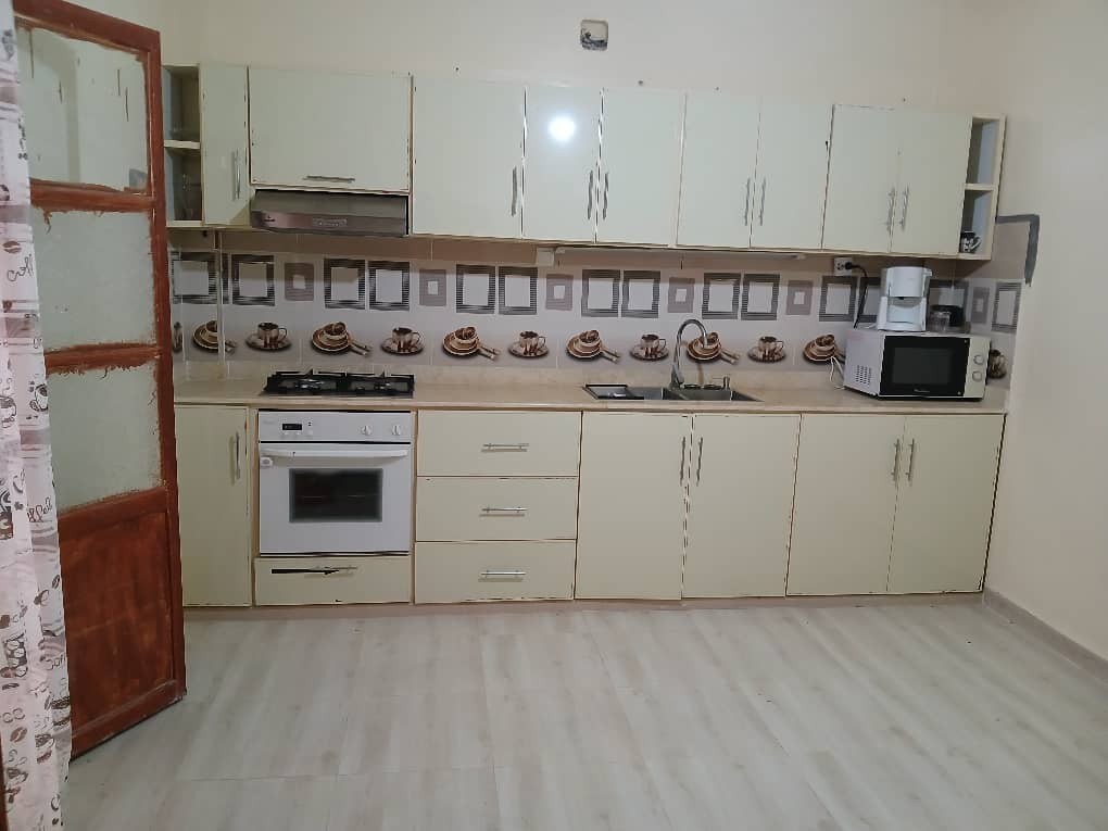 Appartement F3 spacieux et entièrement meublé à Biskra, idéal pour familles et voyageurs d’affaires. Il comprend une chambre parentale avec grand lit, une deuxième chambre avec deux lits individuels et une troisième aménagée en salon avec bibliothèque et table. Cuisine équipée (table à manger, cuisinière, lave-linge). Douche, WC séparés. Wi-Fi, TV, chauffage, chauffe-bain, citerne d’eau et place de parking.