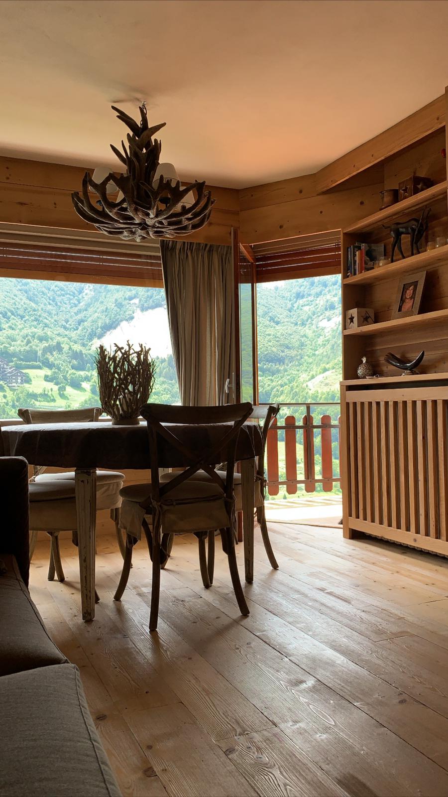 Appartamento mansardato con vista spettacolare sito all'ultimo piano con ascensore di un complesso privato degli anni 70 con portineria annessa. L’ascensore si ferma al quarto , l’ultima rampa per arrivare al quinto va fatta a piedi : entrata, cucinotta, grande soggiorno con zona pranzo, due camere da letto e bagno con vasca. 5 posti letto con la possibilità di arrivare ad 8 tramite brandine pieghevoli. parcheggio condominiale e garage. Davanti al condominio grande campo privato con ruscello.