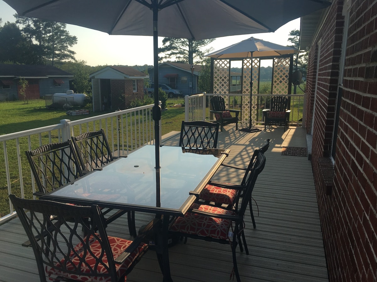 È ora di rilassarsi e godersi una bella vacanza? Almost Home è una spaziosa fattoria circondata dalla splendida terra di Dio, con campi di fieno e splendidi tramonti che offrono solitudine e comfort. Unisciti a noi per un soggiorno tranquillo e silenzioso in campagna. Almost Home dispone di 3 camere da letto e 2 bagni completi. Ampia zona giorno con sala da pranzo per una famiglia numerosa. Cucina attrezzata. Bello spazio esterno, area picnic coperta, griglia e braciere. Situato a 3 miglia a nord di Lineville, a 10 miglia dal lago Wedowee.