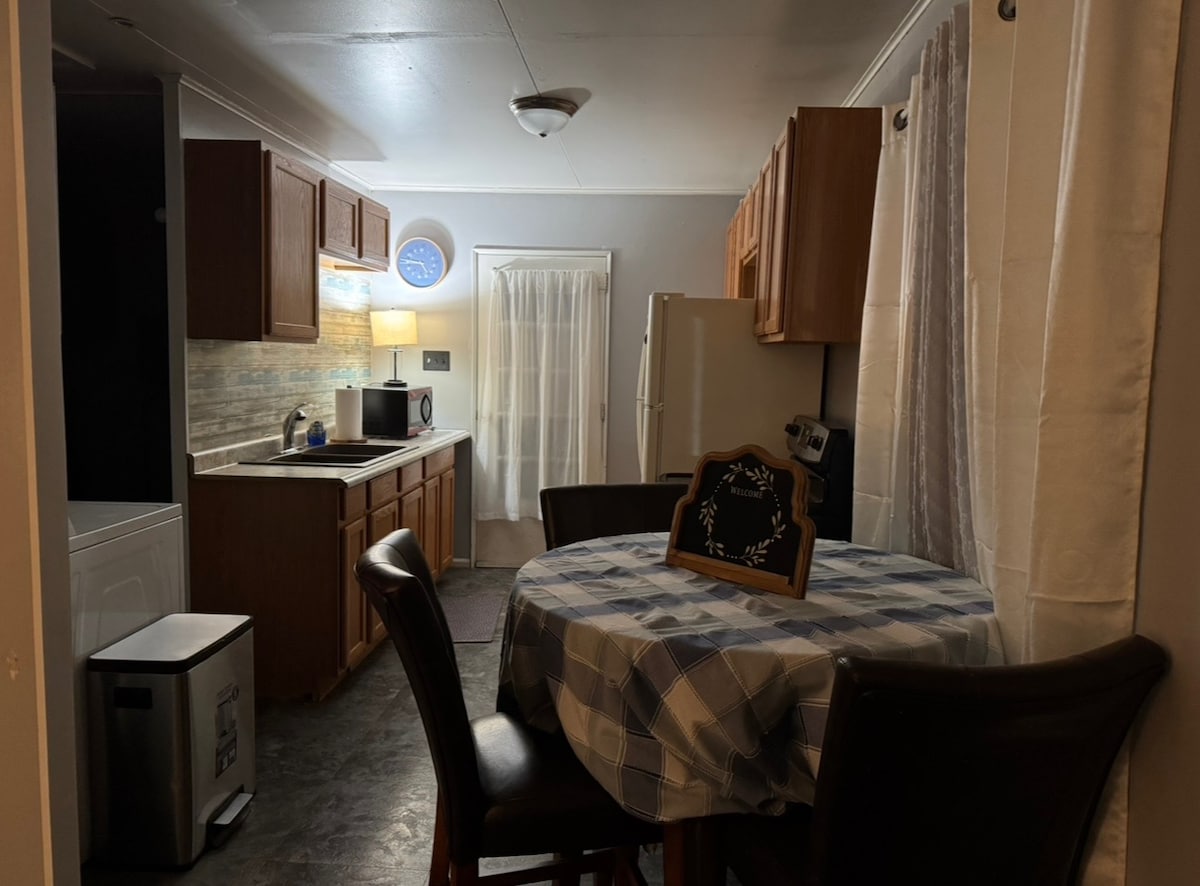 Situato in posizione centrale! Sei a pochi passi da alcuni dei grandi negozi, bar e ristoranti che il centro di Fairbury ha da offrire. Anche il supermercato di Dave è a pochi minuti a piedi. E per gli appassionati di corse, il Fairbury Speedway dista solo 3 minuti in auto o 8 minuti a piedi. L'edificio dispone di 1 camera da letto con letto matrimoniale. Il soggiorno ha un lungo divano e un divanetto letto estraibile, ciascuno dei quali può ospitare 1 persona. C'è un bagno di servizio con wc, lavandino e lavatrice/asciugatrice. L'unica doccia si trova in camera da letto.
