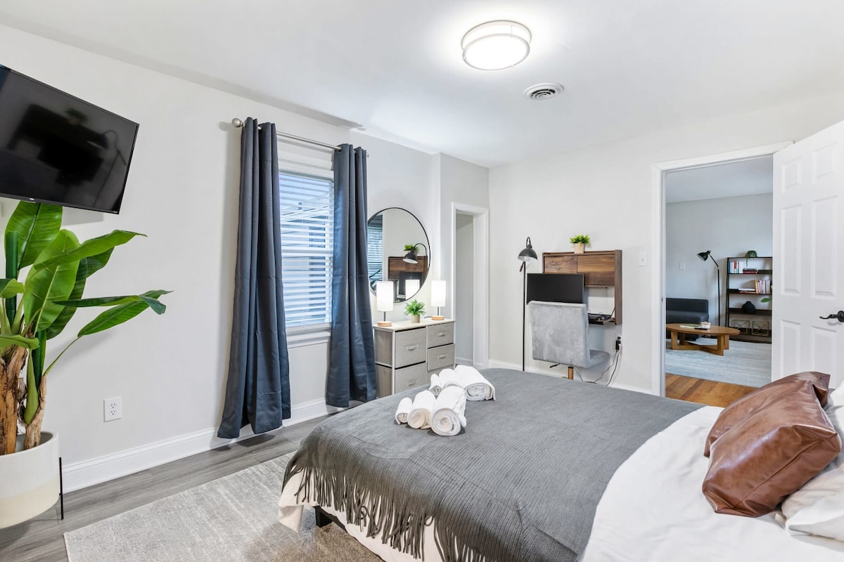Ti diamo il benvenuto alla Ferguson House, la tua casa moderna e accogliente vicino al centro di Plymouth! Situata a solo 1,6 km dal centro e a pochi minuti dalla I-275, questa casa completamente ristrutturata con 4 camere da letto e 2 bagni offre il perfetto mix di comfort, stile e praticità. Goditi la tranquilla posizione di fronte a un parco privato, rilassati nella vasca idromassaggio o rilassati in 1 delle 2 spaziose aree soggiorno progettate sia per il relax che per l'intrattenimento. 🚶♀️ 1,6 km dal centro di Plymouth 🚗 20 min da Ann Arbor l 30 min da Detroit