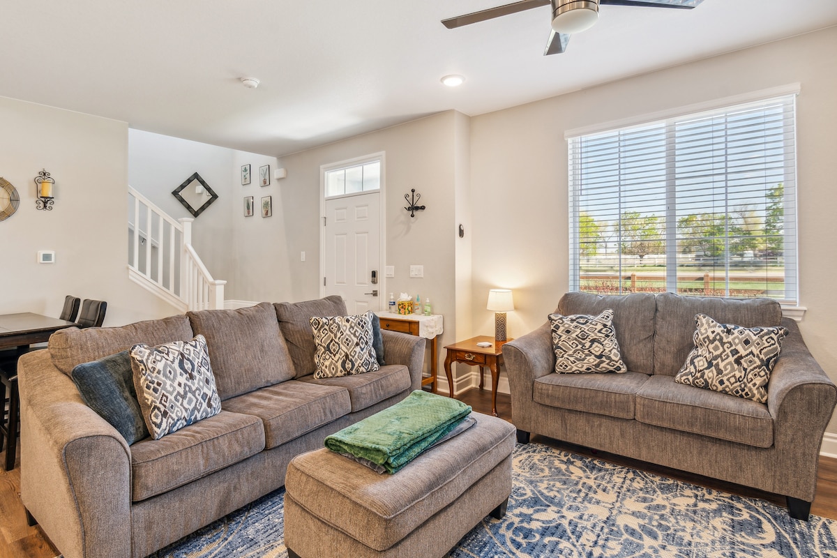 Porta tutta la famiglia in questa nuova casa con tanto spazio per divertirsi. Situata in posizione strategica tra l'aeroporto internazionale di Denver e il centro di Denver, questa casa con 3 camere da letto e 2,5 bagni ha tutto il necessario per rendere il tuo soggiorno a Denver perfetto e confortevole, inclusa una camera da letto principale al piano terra. L'ufficio separato dispone di doppi monitor e di una base per collegare facilmente il computer portatile. Vuoi fare un allenamento veloce? Goditi la cyclette Peloton in casa o raggiungi a piedi il centro fitness, a soli due isolati di distanza.