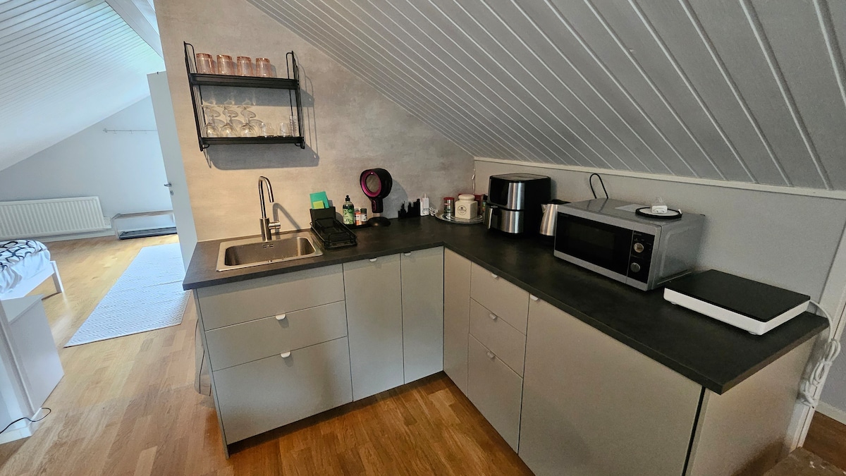 Appartamento recentemente ristrutturato fuori Kungälv vicino al campo da golf, al mare e alle escursioni. Una perla sulla costa occidentale! Qui avete l'opportunità di soggiornare in un appartamento moderno, accogliente e appartato in campagna. L'appartamento si trova vicino al campo da golf Kungälv Kode e vicino alla zona balneare di Vadholmen, oltre a diverse destinazioni escursionistiche a portata di mano. L'appartamento è di circa 50 mq - due camere e cucina, bagno e balcone. Nella camera da letto c'è un letto matrimoniale e un divano letto e nel soggiorno c'è un divano letto per due persone. L'alloggio è appartato e privato.