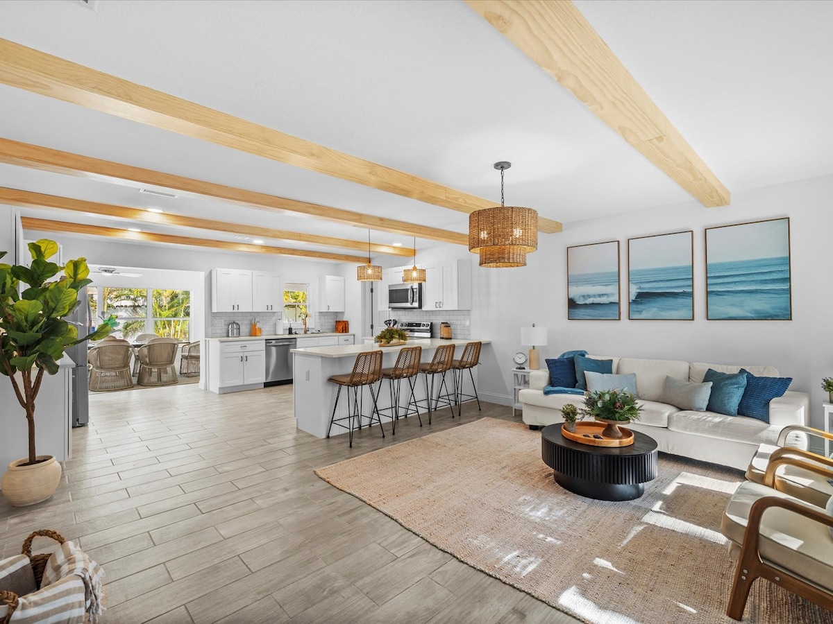 Boho Luxe Pool Oasis • 10 min to Beach • Sleeps 8