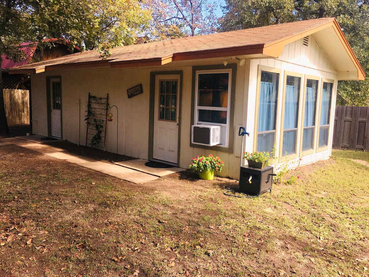 Cottage rustico e romantico con 1brm e divano letto, abbastanza accogliente per una vacanza romantica o una piccola famiglia. Piccolo angolo cottura con frigorifero di dimensioni dormitorio e se senti il bisogno di cucinare, ci sono diversi modi per preparare un pasto. Il cottage ha uno spazio per mangiare al coperto e all'aperto, una bella zona salotto per godersi la natura e una zona focolare. L'ambiente è di nuovo tra gli alberi per una grande privacy. Incontrerai sporco, insetti, lucertole e altre creature pelose e scivolose, quindi fai attenzione a ciò che ti circonda.