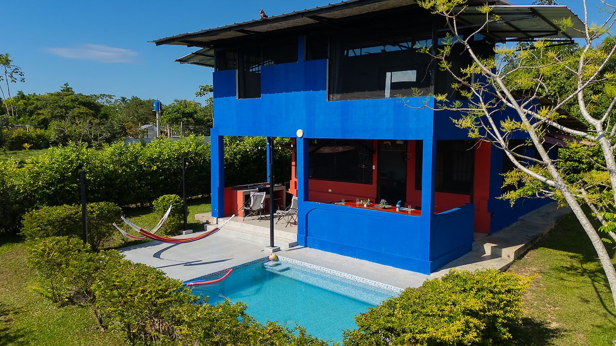 Confortevole casa privata circondata dalla giungla.. materassino primaverile per riposare bene..futon con tavolo al piano di sotto.. Impianto solare 220V..WIFI (STARLINK) A pochi passi da doccia e bagno... Area relax condivisa al coperto... Palestra... Maloca con focolare al coperto... Terrazza con piscina da 9000 litri (con foglie e alghe naturali) Situato fuori città nella giungla ... accesso alla città a piedi o in mototaxi a 10 minuti Nel suo habitat naturale puoi vedere i ragni delle scimmie e altre creature della giungla