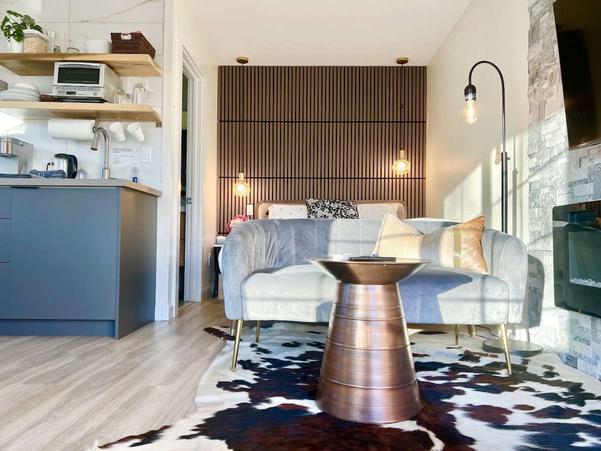 Our lovingly designed cozy but SMALL studio is perfect for solo traveler(too snuggle for 2). Modern design, upscale European stone/tile work in kitchen and bath. Private patio, parking w/ secure gate, laundry, electric fireplace, rainfall shower, LED vanity mirror, Keurig, desk, strong Wi-Fi, fully stocked kitchen w/ utensils and cookware. close to SJC Airport, SJSU campus, SAP Center, Convention Center, Downtown SJ, HWY-87, tech companies like Zoom, Adobe, PWC, EY. Walk to Japantown.