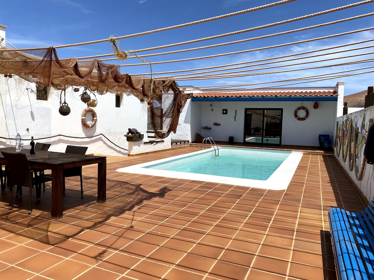 Cebadera nice house, situata nel tranquillo villaggio di Tetir (zona centro/nord dell'isola) a 15 minuti dalle migliori spiagge di Corralejo, Cotillo e Majanicho. Dispone di piscina privata (solo per te), solarium, terrazza, barbecue, sala per il telelavoro, camera da letto con bagno e spogliatoio, soggiorno e cucina. Inoltre Wi-Fi, campo da bocce e parcheggio privato. Decorata in stile marinaro, il suo scenario, in blu e bianco, trasporta in un paradiso di mattine luminose e vacanze eterne.