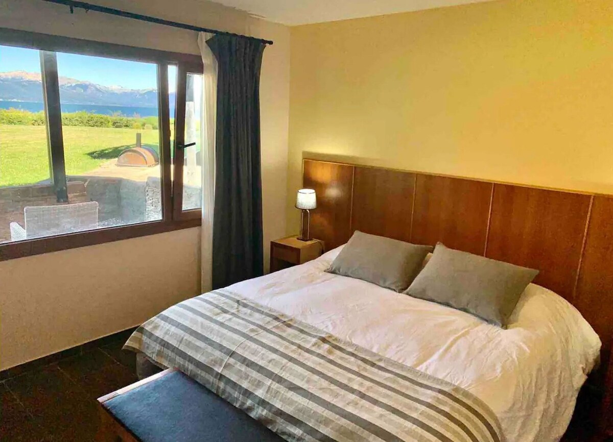 Con vista imponente sul lago e sull'Isola Vittoria nella zona di Llao Llao. Un piano il soggiorno, la cucina e la sala da pranzo si affacciano su una terrazza con balcone in giardino. Ampio caminetto con barbecue. Divano letto nella zona soggiorno Dormi con letto matrimoniale grande, bagno interno In discesa sul lungomare Servizi Wifi. Terrazza con balcone e frigorifero Lenzuola e asciugamani cambiano c/ 5 giorni Asciugacapelli Parcheggio privato Esclusivo per le coppie Non c'è colazione Non c'è la TV Le pulizie finali pagano 20 USD