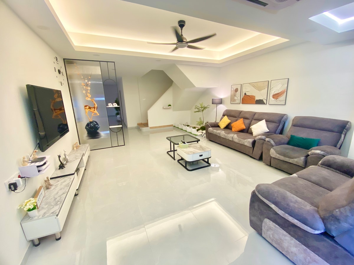 Il design è urbano e confortevole, completamente climatizzato: - 2+2 posti auto - 2 scaldabagni - 5 condizionatori - Check-in con portiere - WIFI (100 mbps) e NJOI - Lavatrici - Casa di 1.700 piedi quadrati (XL) - Acqua in pressione - 2 asciugacapelli - Ferro e asse da stiro - 6 asciugamani - Prodotti da bagno essenziali - Macchina filtrante per l'acqua COWAY Tra i luoghi di interesse e nelle vicinanze: - Poli Ungku Omar a 5 minuti - Grotta di Kek Lok Tong a 15 minuti - Sunway Hotspring a 25 minuti - Concubine Street a 20 minuti - Aeroporto di Ipoh a 10 minuti - Starbucks e McDonald's a 7 minuti