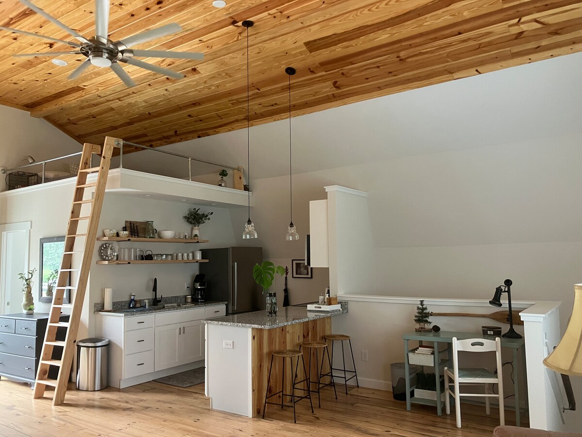 Vieni a goderti la pace e la tranquillità di questa minicasa unica nella contea. Rilassati in questo accogliente letto matrimoniale nel soppalco di questo cottage privato in stile bohémien. Prepara caffè o pasti in cucina e lavora alla scrivania o al tavolo da pranzo all'aperto utilizzando il wifi. La doccia ha acqua calda praticamente illimitata. Puoi anche cenare o rilassarti sull'amaca nel giardino segreto, sotto il bagliore delle luci del bistrot.