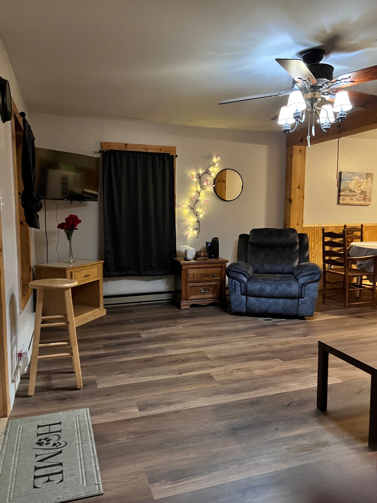 Il tuo campo base per tutto l'anno, per attività, eventi o semplicemente per rilassarti nelle Adirondacks. Questo elegante appartamento con una camera da letto nuovo di zecca è perfetto per viaggi di gruppo o per una fuga in due; dispone di un letto matrimoniale con materasso Dreamcloud nella camera da letto privata con TV, oltre a due divani letto e un divano per ospitare più persone del vostro gruppo, se altri si uniscono a voi. L'appartamento si trova sopra il garage, che è separato dalla casa.