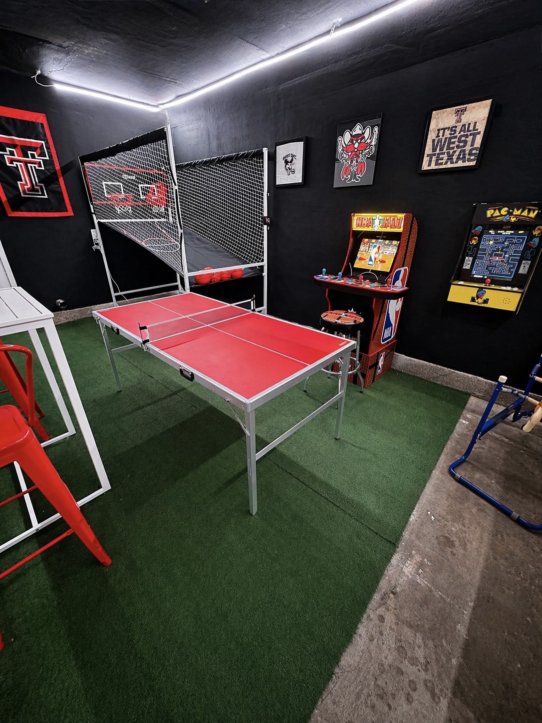 Stop fighting Lubbock traffic. Whether here for a Tech game or reunion, The Matador Arena is built for high-energy fun. Just 4 mins from the Loop, you avoid gridlock while staying 10 mins from everywhere. Enjoy the "Arena"—our garage hub with basketball, air hockey, foosball, Simpsons arcade, LED vibes, and TV lounge. Relax in the hot tub, or hit the firepit and cornhole in the fenced yard. Fully loaded executive kitchen. Book early; game days fill fast! 12-14 guests max.