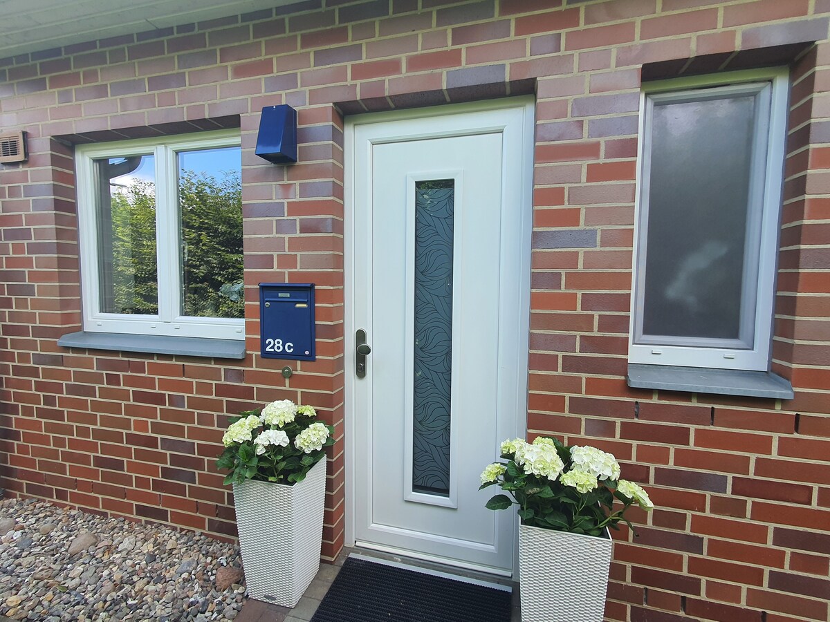 Moderno appartamento con 2 camere da letto in una tranquilla super posizione Appartamento con 2 camere da letto (nuova costruzione) in una zona residenziale ambita, superficie abitabile di circa 50 metri quadrati, vicino all'università e alla città vecchia, direttamente alla riserva naturale, attrezzature di alta qualità, cucina di design, 4 posti letto (letto matrimoniale 2 x 2 m, divano letto e letto per gli ospiti), pavimentazione con Blauer Engel, parcheggio e terrazza.