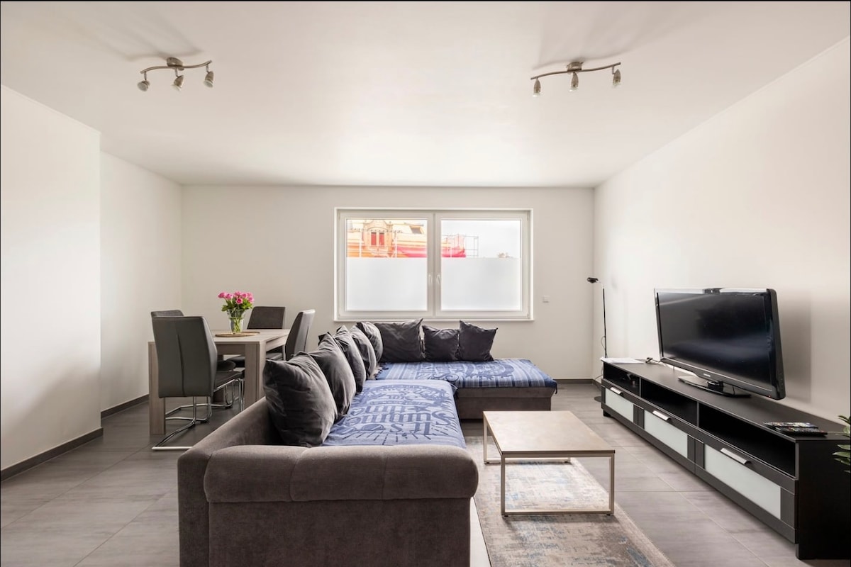 Welcome to this modern 3-bedroom, 2-bath apartment in charming Walferdange, just 10 minutes from Luxembourg City and Kirchberg, and 10 minutes from the airport. Enjoy a bright, peaceful space with two queen beds, one twin, a full kitchen, air conditioning, heating, a terrace, and free parking. Perfect for business, family, or leisure stays.
