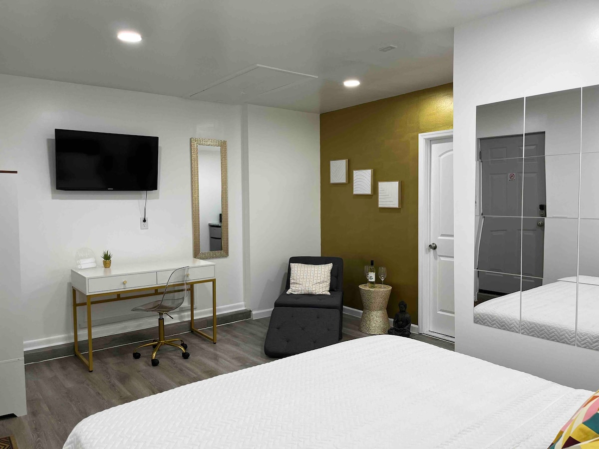 Questa splendida ed elegante camera in stile suite con un'ottima posizione nel Westside. Camera da letto molto privata, calda e confortevole, dove puoi avere un po' di privacy per lavorare o semplicemente rilassarti dopo una lunga giornata. La maggior parte dei nostri ospiti proviene da tutto il paese per eventi speciali o semplicemente per una vacanza di coppia. Mobili nuovi di zecca, smart TV, WIFI e Netflix. Serratura elettronica e misure di sicurezza, sicurezza e quartiere amichevole Amerai questa fuga unica e romantica.