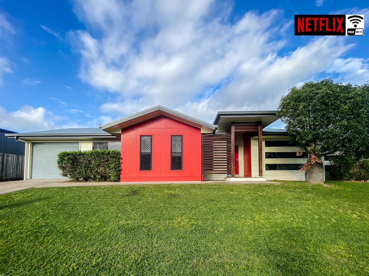 Rilassati in questa casa tranquilla in posizione centrale sulla strada principale di North Mackay. Esci dal cancello per raggiungere la bellissima passeggiata di Gooseponds, che ti porterà oltre uno skate park, stazioni di allenamento, parchi giochi e la piscina comunitaria, taverne a 500 metri da entrambi i lati della porta d'ingresso e un negozio di alimentari/da asporto dall'altra parte della strada. C'è tutto. La casa è completamente attrezzata con uno spazio pulito e ordinato per il tuo divertimento. Rilassati sul salotto sul retro o goditi la cena all'aperto nell'area bar.