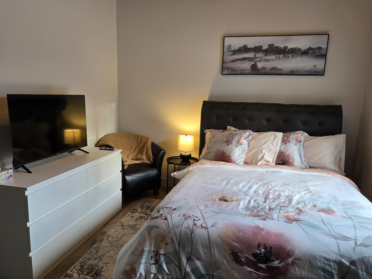 Goditi le finiture moderne e l'atmosfera accogliente di questa spaziosa suite! Che tu sia in città per lavoro o per visitare la famiglia per il fine settimana, questo spazio appena ristrutturato è luminoso e arioso, e dispone di tutti i servizi tra cui un ingresso privato, cucina a vista, sala da pranzo e soggiorno, completa di caminetto e centro di intrattenimento, 2 camere da letto con letti matrimoniali, lavanderia e bagno completo. Ottima posizione vicino a ristoranti, negozi e parchi locali.