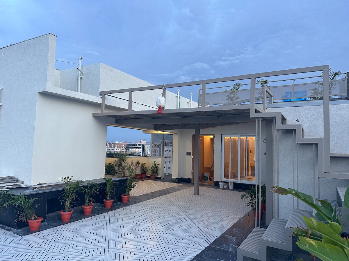 Con un'elegante terrazza per feste con interni ultramoderni e un accogliente attico con una camera da letto con aria condizionata centralizzata, che si trova nel cuore della zona di Madhapur... è uno spazio per famiglie ed estremamente tranquillo. Circondato da supermercati e ristoranti. Ascensore diretto dalla cantina all'attico. Zona accogliente. Il posto migliore per rilassarsi.