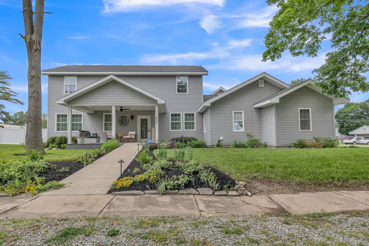 Benvenuti alla MommyC's Villa Fun House, situata nel cuore di Lapel, in Indiana. Questa spaziosa ma accogliente casa in stile vintage offre un tocco unico di eleganza, fascino rustico e divertimento per tutta la famiglia. Con toni neutri accentuati da tocchi di giallo ovunque, ogni angolo trasuda calore e raffinatezza. Entra in un paradiso spazioso che accoglie le famiglie a braccia aperte, vantando 465 metri quadrati di spazio invitante che può ospitare comodamente fino a 13 persone e anche un piccolo.