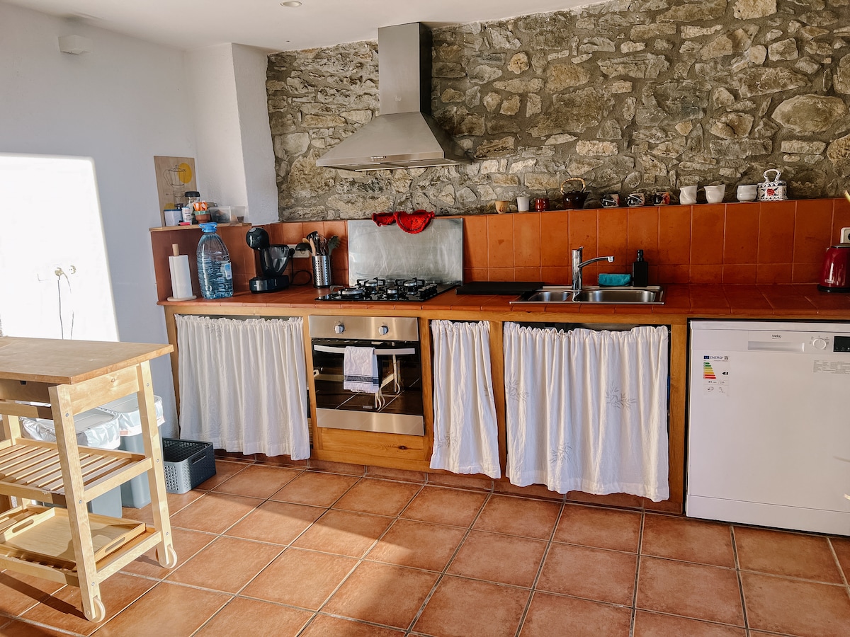 Benvenuti a Mas Vinyoles, una casa rurale a Les Gavarres, Girona, con due alloggi per 4 e 6 persone, riscaldamento, camino, lavatrice, lavastoviglie, piscina e un giardino con orto. Il prezzo include l'accesso a camere e bagni in base al numero di persone nella prenotazione. L'alloggio è privato; se siete in due, saranno abilitate una camera e un bagno, e le altre rimarranno chiuse. È possibile pagare un supplemento per utilizzare più spazi. Grazie per averci aiutato a mantenere una tariffa equa.