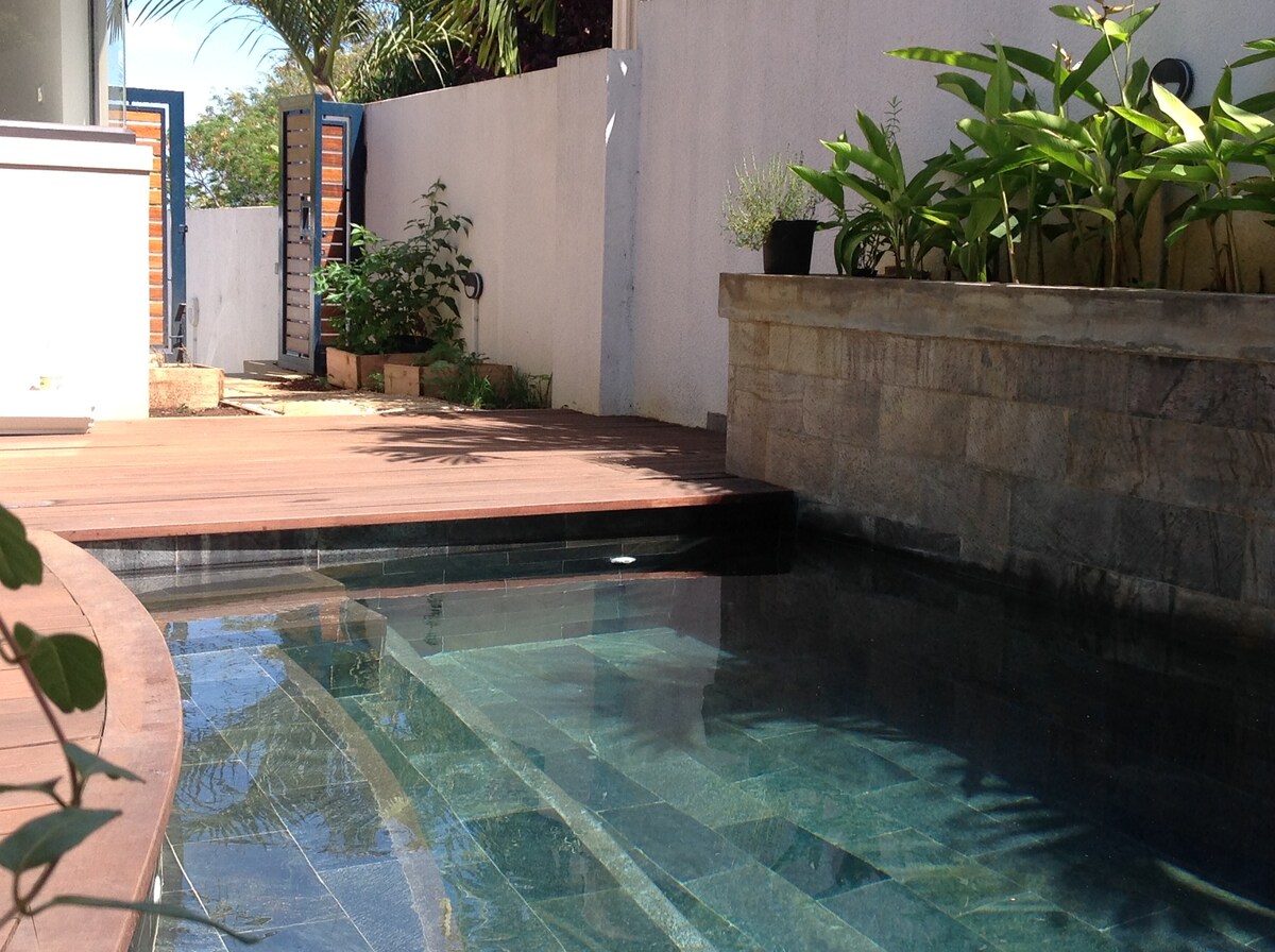 La residenza si trova a pochi minuti a piedi dalla spiaggia di Albion, dove si trova il Club Med. Ideale per una coppia o per un viaggiatore singolo. Vieni a goderti la nostra bellissima isola, il calore dei mauriziani e le fantastiche attività da fare sulla terraferma o in mare. Riceverai un'attenzione dedicata dalla nostra famiglia.