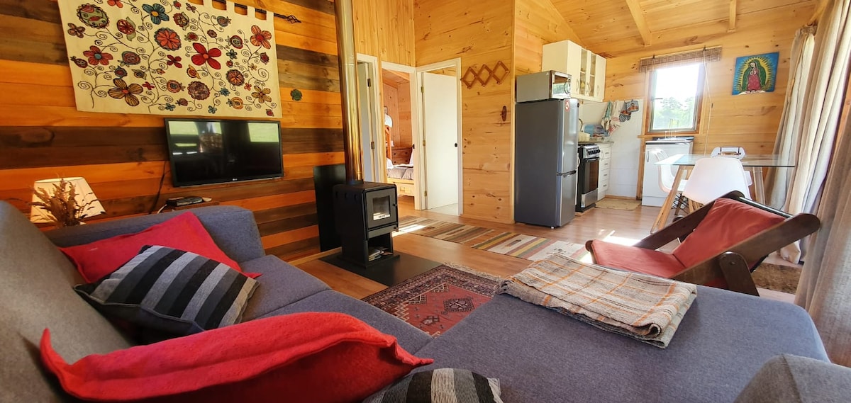 A 45 minutos o 30 km de Pucón inserto en la naturaleza, con WiFi de buena velocidad, alejado del ruido de la ciudad, ideal para una conexión-desconexión rodeado de árboles nativos, del canto de las aves, de los rayos del sol y la lluvia cordillerana. En nuestro espacio utilizamos energía eléctrica y energía renovable (solar), para el consumo energético de nuestra cabaña, no incluimos grandes lujos, pero si puedes darte el lujo de que con tu estadía estás ayudando a preservar este hermoso lugar
