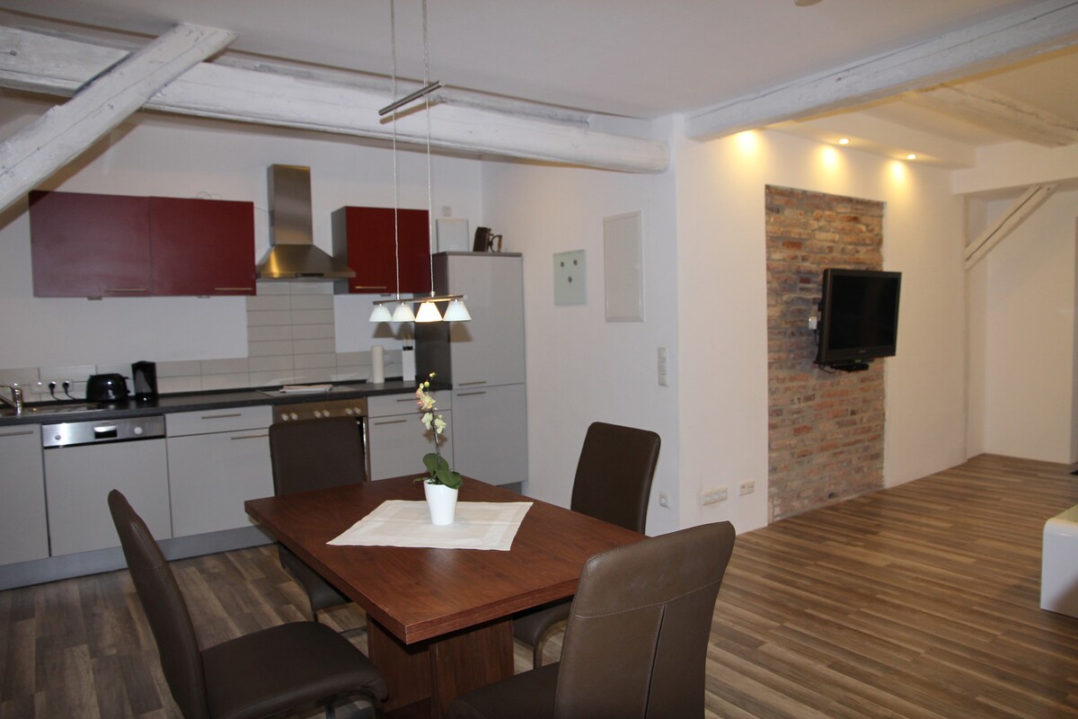 Questo spazioso appartamento di design di 170 mq si trova nella posizione migliore di Heidelberg, perfetto per i gruppi! L'enorme zona giorno e pranzo con cucina a vista Bulthaup e un grande tavolo da pranzo offre molto spazio per momenti condivisi. La terrazza sul tetto può essere completamente aperta verso l'interno: un vero punto di forza! Tutte le principali attrazioni come il castello e il Ponte Vecchio sono a pochi passi di distanza. Ristoranti, bar e negozi proprio fuori! Ideale per famiglie, amici e per chi viaggia per lavoro. ✨