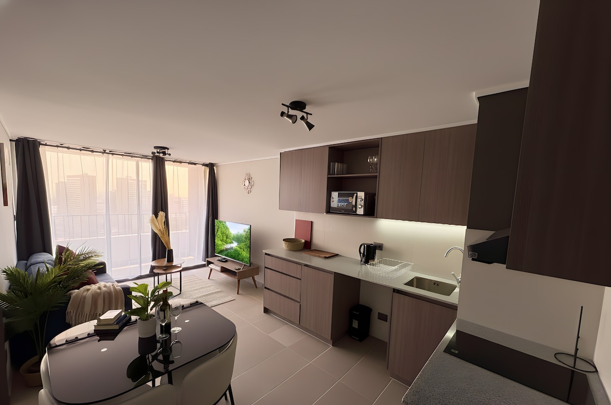 Rilassati in questo spazio tranquillo ed elegante. scopri il comfort di questo nuovo appartamento a Santiago del Cile. Con parcheggio e aria condizionata. Dispone di 1 camera da letto, bagno, cucina completa, terrazza, wifi 5 G, TV 55 pollici. L'edificio offre piscina, palestra, gazebo e rastrelliere per biciclette A POCHI PASSI DALLA METRO EL PARRON. Nelle vicinanze troverete: bar, posti dove mangiare 24 ore su 24, farmacie, supermercati, ristoranti. LA TUA SCELTA PERFETTA.