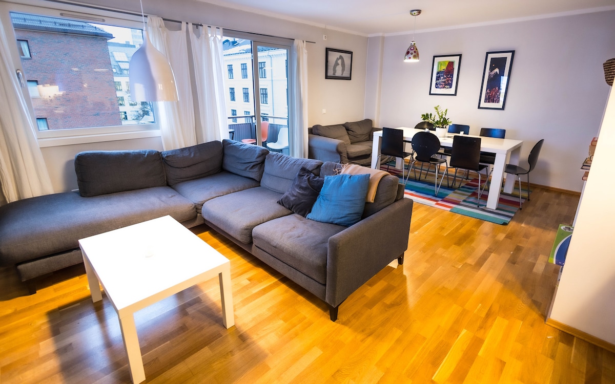 Monolocale moderno con accogliente balcone privato, bagno, cucina, letto matrimoniale e tavolo da pranzo: tutto ciò di cui hai bisogno! Situato in una tranquilla strada laterale nel centro di Oslo. A pochi passi dalla stazione centrale, da via Karj Johan e dalla famosa Grunerløkka. Un sacco di negozi e ristoranti proprio dietro l'angolo. Hai anche accesso a una fantastica terrazza sul tetto con solarium e una magnifica vista sulla città.