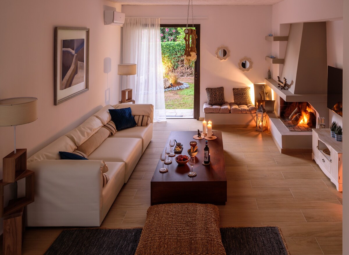 Scopri l'eleganza senza tempo all'Afrodite Suite. La nostra suite dal design meticoloso offre la perfetta combinazione di lusso moderno con accenti di fascino antico. Realizzata in modo unico con una calda illuminazione interna e il bagliore di un caminetto, la nostra suite crea un ambiente morbido e stravagante. L'alloggio è dotato di sistemi all'avanguardia e di un letto soffice per il massimo comfort. Goditi le notti, rilassati accanto al caminetto e immergiti nella cultura e nell'ospitalità locali.