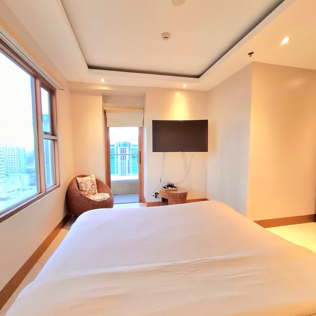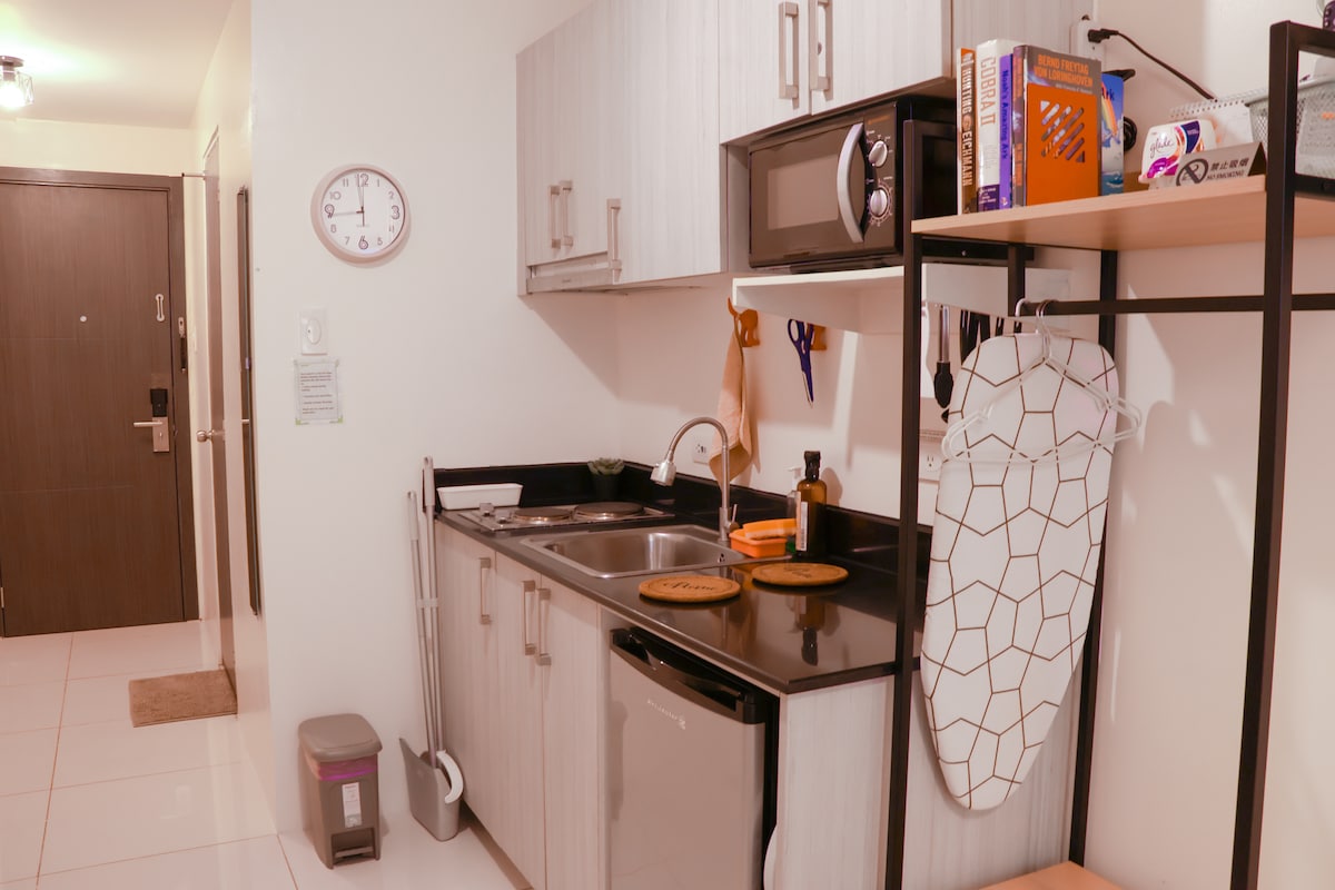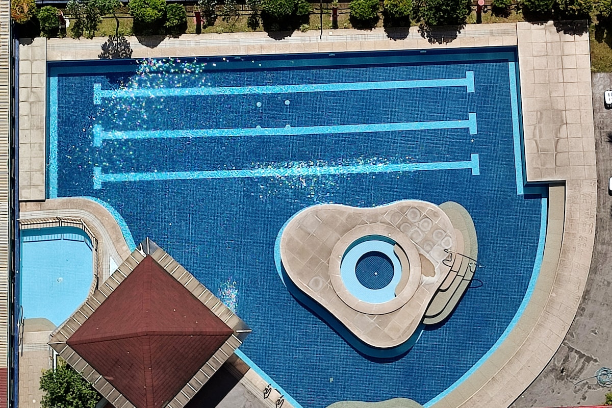 Moderno e spazioso 1BR con balcone e piscina a pochi chilometri dall'aeroporto e a pochi passi da numerose attrazioni della zona di Manila Bay. Cucina ben attrezzata, soggiorno illuminato dal sole, letto comodo, Wi-Fi, Netflix, aria condizionata e TV sia in soggiorno che in camera da letto. Alloggio perfetto per coppie, piccole famiglie o viaggiatori d'affari. Sauna e area giochi per bambini - gratuita Piscina: gratuita per un massimo di tre ospiti; 200 PHP per ogni ospite aggiuntivo.