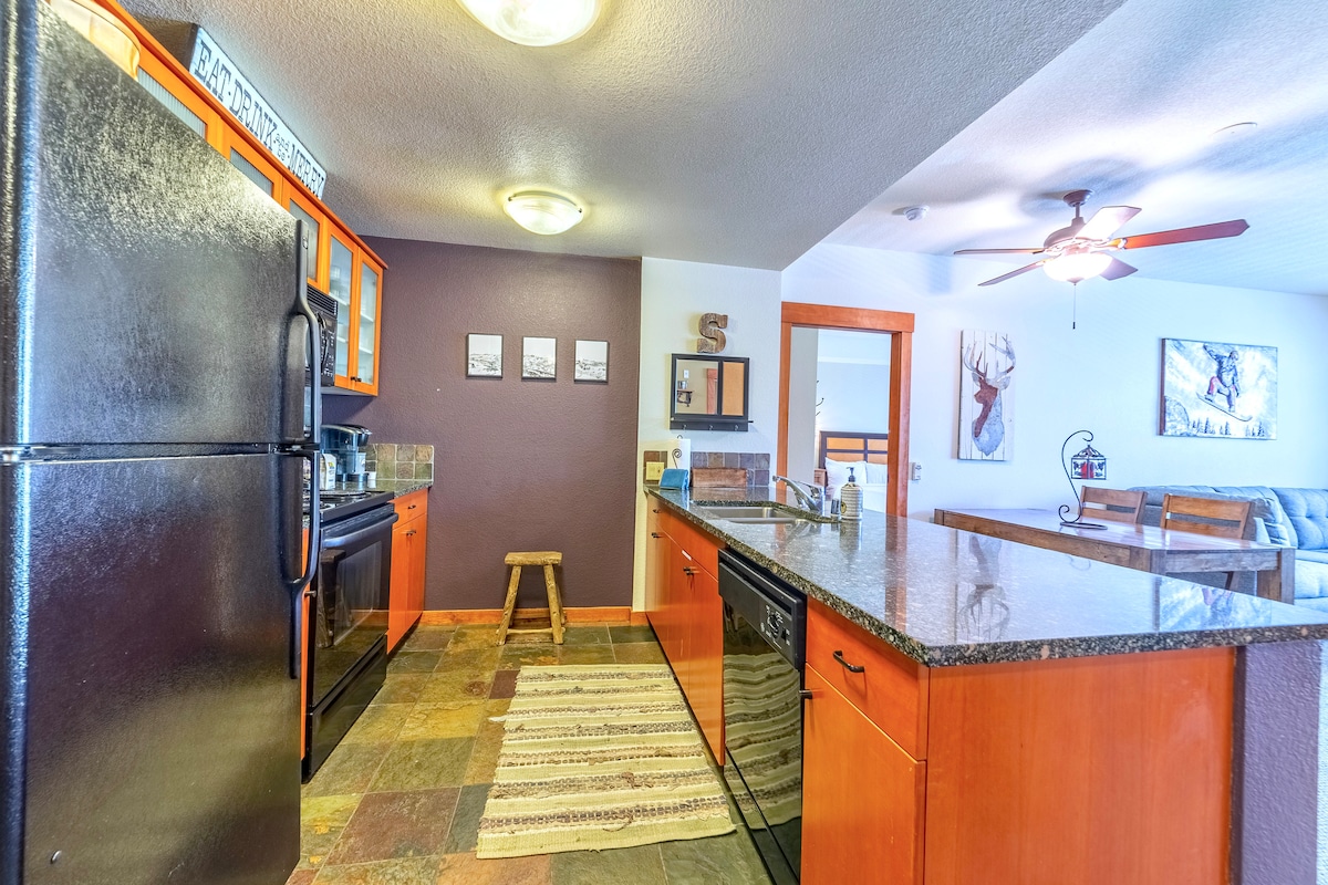 Questo appartamento moderno, pulito e tranquillo con 2 camere da letto e 2 bagni a The Village, sul lato tranquillo della Lincoln House, dispone di un parcheggio sotterraneo e si trova a soli 90 gradini dalla Village Gondola. Una cucina/ zona giorno a pianta aperta ti collega all'azione sia che tu stia preparando un pasto o rilassandoti davanti al fuoco. Può ospitare 6 persone in tutta comodità su 1 letto king-size, 1 letto queen-size e un divano letto. Cucina attrezzata, extra per famiglie e arredi rustici rendono questo il miglior bilocale.