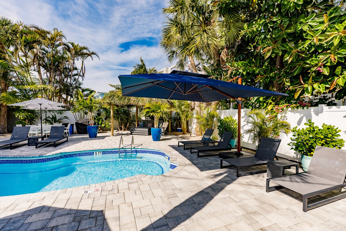 The Royal Villa on Anna Maria Island offers a relaxing quiet getaway for up to six guests. Our heated pool is only steps away from your villa and the beach is a short walk away. This villa can be adjoined to "the Lady" villa and can then accommodate eight guests total. Please ask for availability in advance for this feature. Each unit has an assigned parking space, see other details regarding guest parking. Holmes Beach VRC24-000020