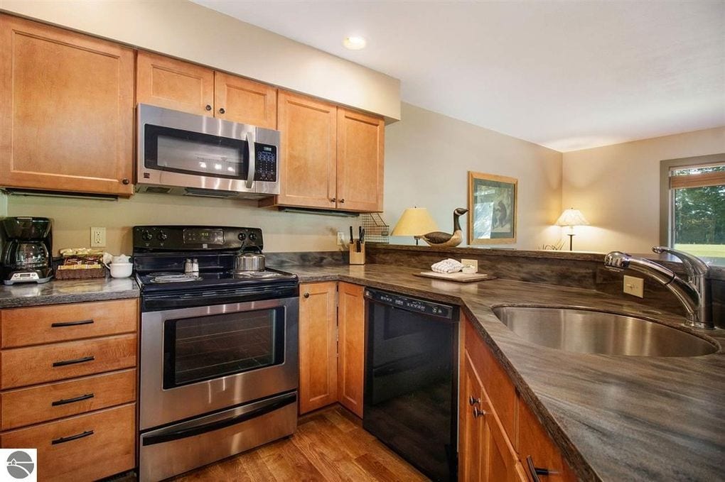 Goditi la vacanza rilassante che meriti e prenota un soggiorno in questa casa vacanze al resort Onekama. L'appartamento con 1 camera da letto e 1 bagno è appena ristrutturato e dotato di cucina completa, smart tv, camino a gas e patio con vista sul lago Portage! Non solo avrai accesso diretto alle spiagge, ma avrai anche una piscina stagionale all'aperto e una vasca idromassaggio. Avventurati e pratica il tuo swing all'Arcadia Bluffs Golf Club o goditi una passeggiata pittoresca attraverso la Portage Point Woods Preserve.