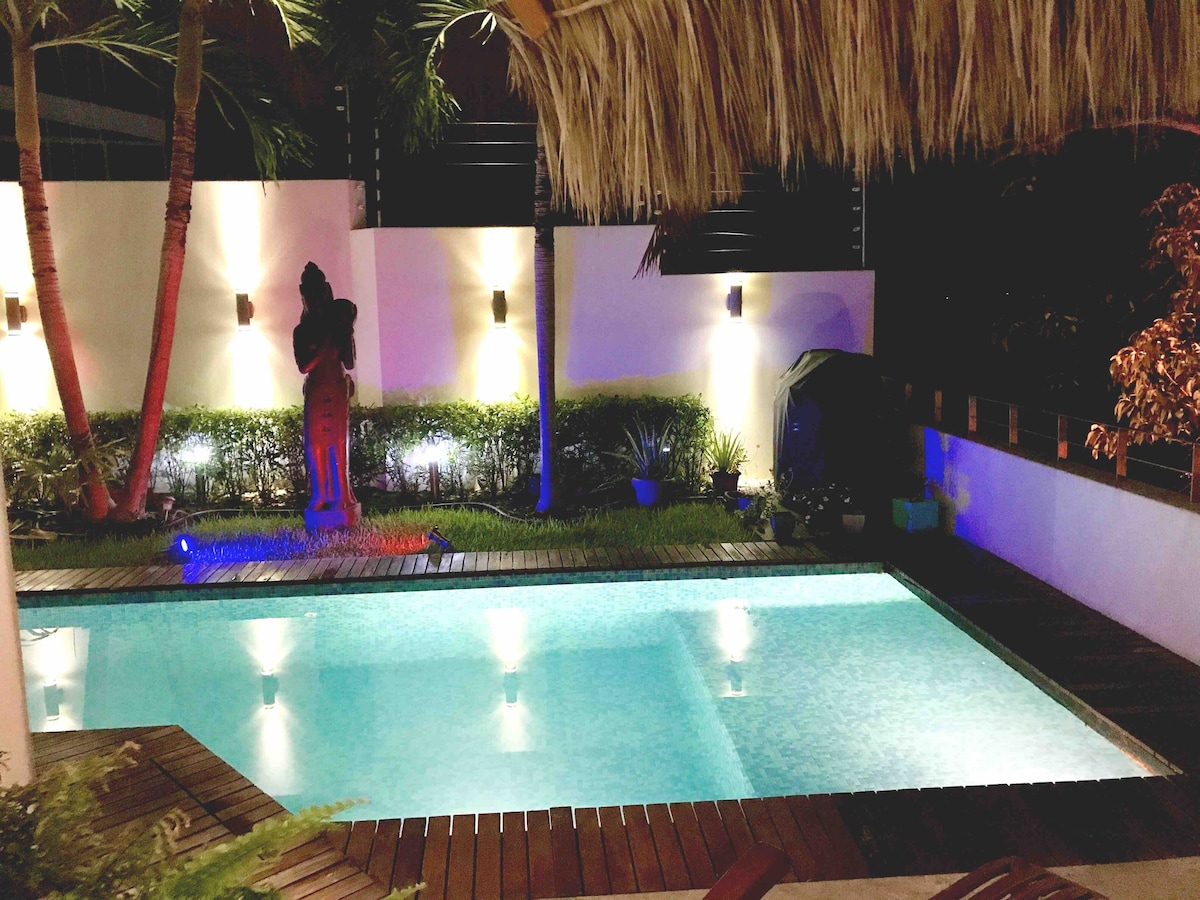 Casa piuttosto bella, piscina privata, aria e spiaggia !
