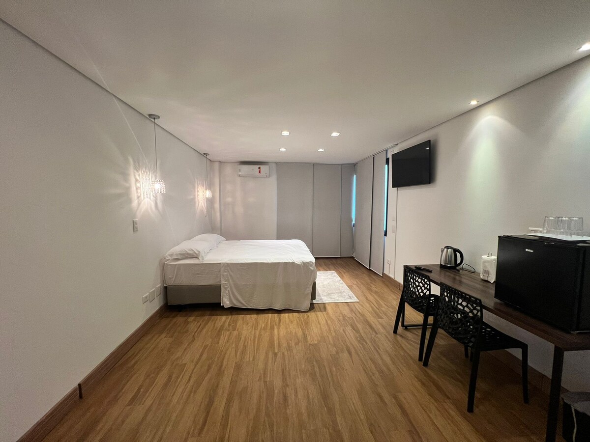 Camera matrimoniale con letti singoli e bagno privato in pensione moderna vicino al centro di Maringá. Con colazione inclusa.