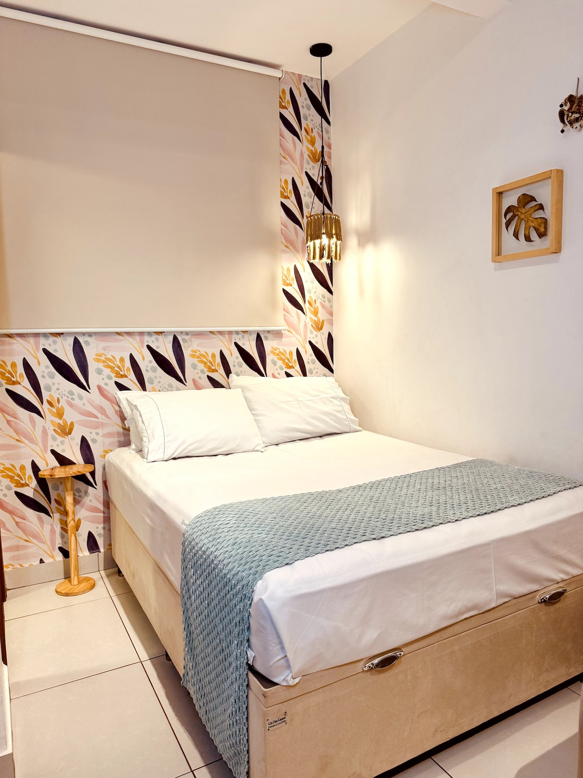 Appartamento ristrutturato, vicino a Unicesumar nella meravigliosa Cidade Canção, Maringá. L'appartamento dispone di: - Un posto auto coperto; - Aria condizionata in entrambe le camere; - Internet; - TV/Smart in soggiorno; - Cucina completa; - Biancheria da letto e da bagno. - Il check-in/check-out può essere effettuato in qualsiasi momento entro l'orario concordato, direttamente con il portiere. - Il condominio dispone di un negozio di alimentari.