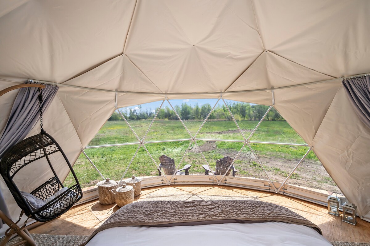 Welcome to the LOFT - A private, eclectically designed spa-inspired unique stay in the historic Webb Schoolhouse, less than an hour from Toronto. Featured in TORONTO LIFE, this private loft includes a sauna, unique hanging bed, wood stove, kitchenette and is filled with art, and huge tropical plants as well as a projector & giant screen for epic movie nights. Relax and recharge, roam the grounds and enjoy the beautiful outdoor spaces, the permaculture farm, animals, and fire pit.