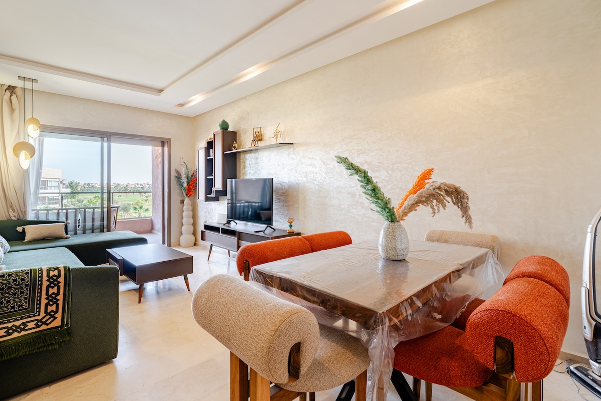 Scopri il cuore di Marrakech nello splendido e tranquillo golf resort Prestigia! A soli 5 minuti di auto dall'aeroporto e a 7 minuti di auto dal centro città, potrai accedere facilmente a tutte le attrazioni da questo nuovissimo appartamento con 3 camere da letto. Potrai godere di una vista mozzafiato sul campo da golf e sulla piscina. Il residence offre eccellenti misure di sicurezza, garantendo un soggiorno sicuro, oltre a un ristorante e spazi verdi per il tuo divertimento! La tua casa ORA