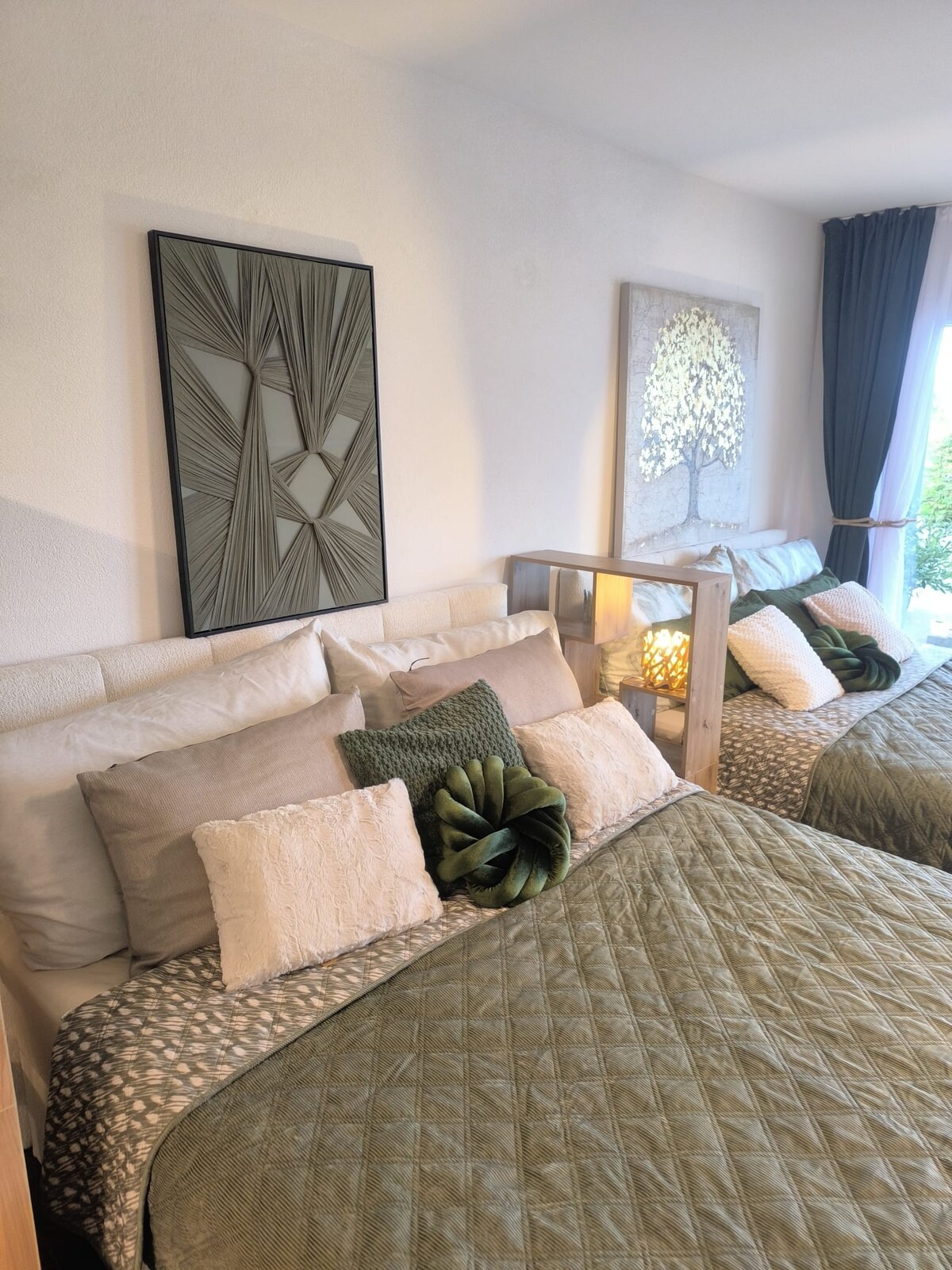 Profitez de 2 grands lits Boxspring très confortables et d’un salon cosy avec canapé, fauteuils, grande TV connectée et Nintendo Switch. La cuisine moderne est entièrement équipée (lave-vaisselle, micro-ondes…). La salle de bain dispose d’un lave-linge et d’un sèche-linge – gratuit. Idéal pour les familles : tout le nécessaire est sur place (chaises hautes, lit bébé, baignoire, jouets…) Petit + : accès à un fitness moderne avec différents appareils et matériel complet pour vos entraînements.