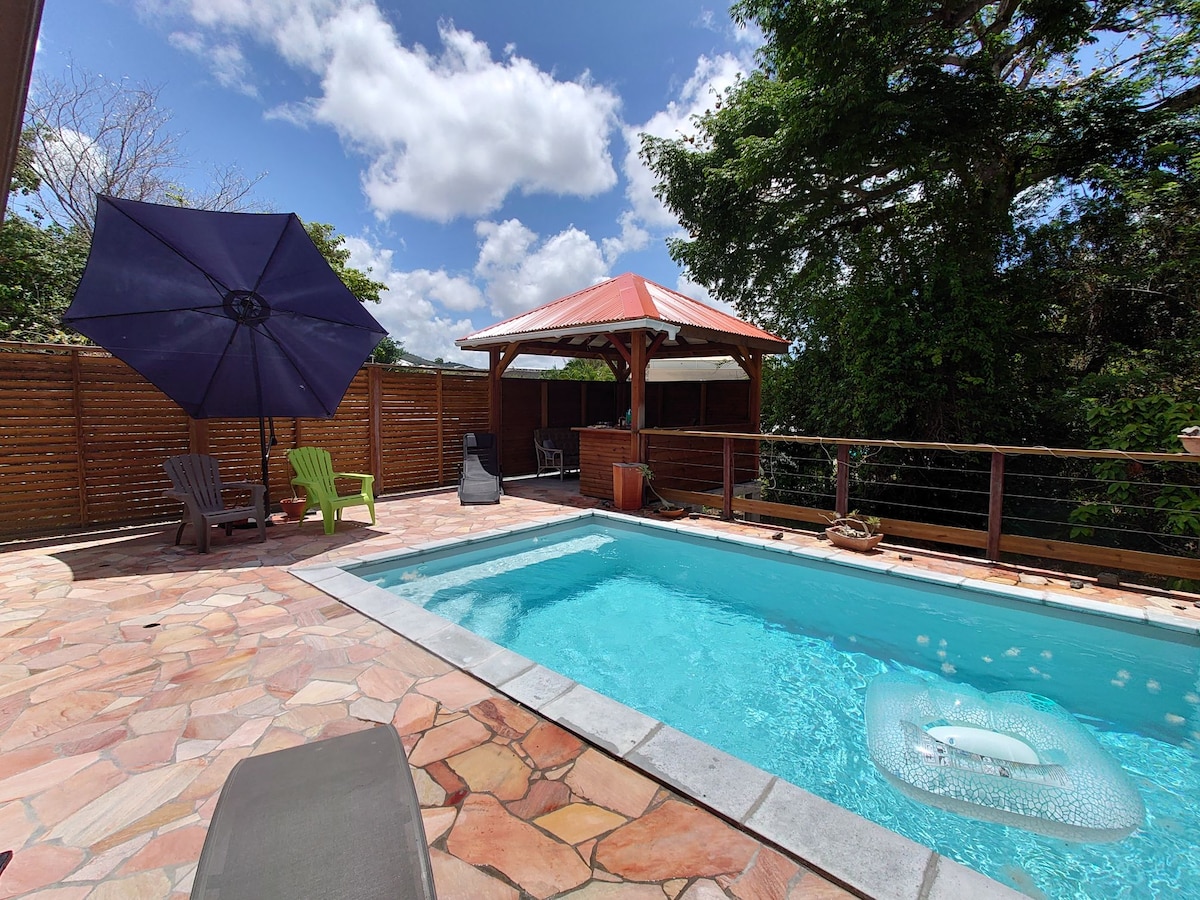 Turtle Bay Locations Grande Anse - Martinique Mini Villa T1 en hauteur offrant une vue panoramique sur la mer et la campagne. Accès mer à 50m à pieds. Plage connue pour ses nombreuses tortues vertes visibles en palme masque tubas toute l’année. Composée d’une chambre climatisée avec moustiquaire, une salle de douche avec WC, une cuisine équipée sur la terrasse couverte et une piscine privée de 2m*3m sur la terrasse découverte. Restaurant TiSable à 50m et petits commerces à 500m.