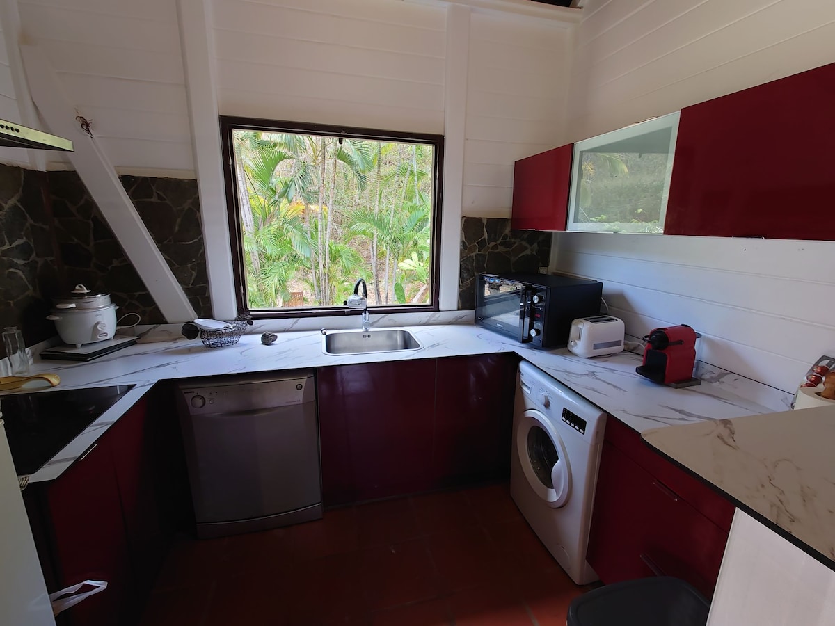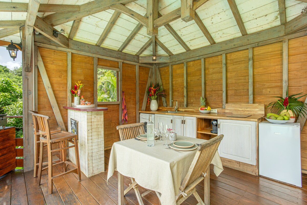 Il Lodge Muscade sarà un vero invito al riposo e al lasciar andare... Per non parlare delle serate sulla vostra terrazza, dove potrete godervi il tramonto con una piacevole brezza. sarete felici di vivere immersi nella natura. Potrete godere di una piscina privata al sale in pietra di java con trabocco che permette di ammirare una vista eccezionale circondata da un esuberante giardino tropicale Attenzione questo posto è riservato solo agli amanti della natura