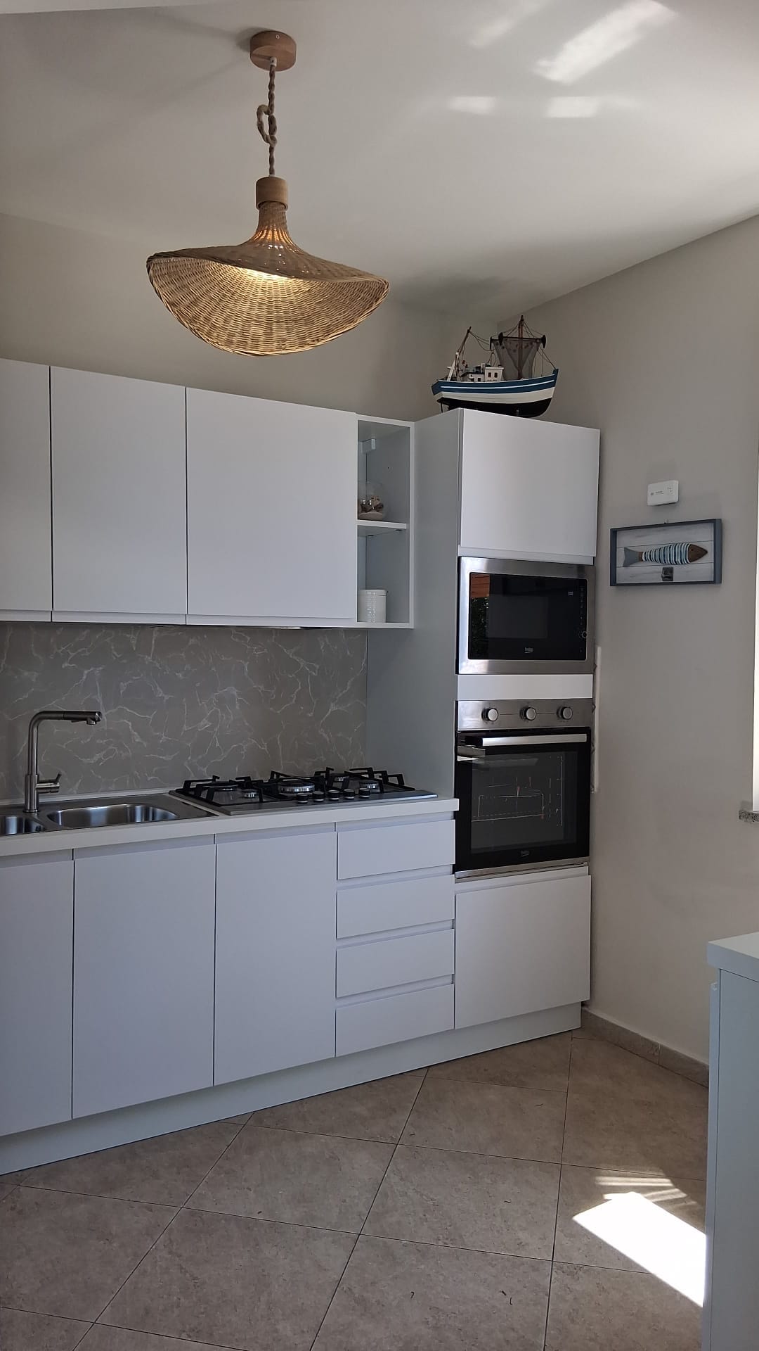 Our apartmens are right on the beach, you walk ou from the door on the shore and the beach is there, calm quiet peaceful, a gorgeous sea to enjoy! A Big balcony where to have breakfast, dinner or simply read a book faces an impressive sea view. Air conditioning, wi-fi, french beds and a well equipped kitchen to live your vacation the best way. Restaurants, coffee bars, promenades, boat rental to explore our coasts, a bike park to ride around our hills, a vacation you'll never forget!