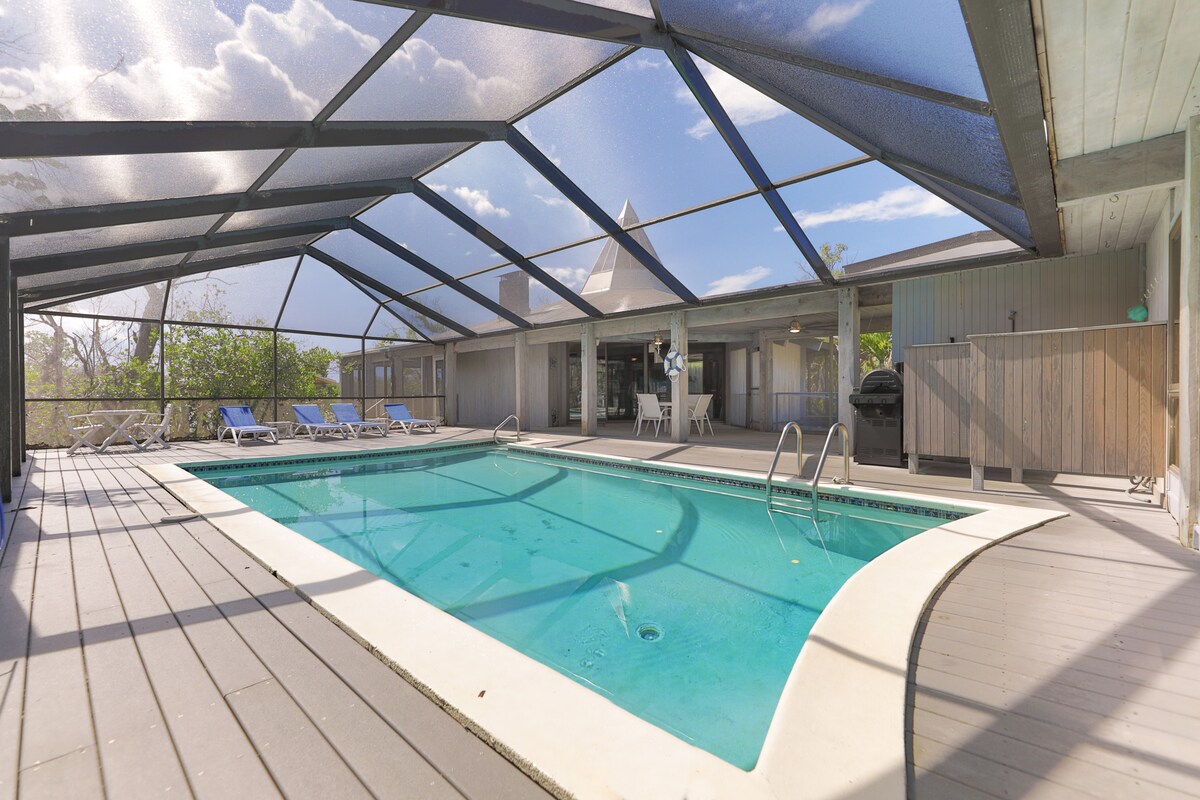 Benvenuto a Pineland Palms, il tuo rifugio tropicale sul pittoresco campo da golf Alden Pines di Pine Island! Questa elegante casa con 3 camere da letto e 2 bagni vanta un comfort spazioso, una splendida piscina privata e una posizione imbattibile. Raggiungi a piedi il porto turistico di Pineland e prendi il traghetto Island Girl per raggiungere spiagge famose in tutto il mondo come Cayo Costa e North Captiva. Che tu stia giocando a golf o facendo un giro dell'isola, questa è la tua porta d'ingresso per il paradiso. Prenota ora e vivi il lusso rilassato nel cuore di Pineland!