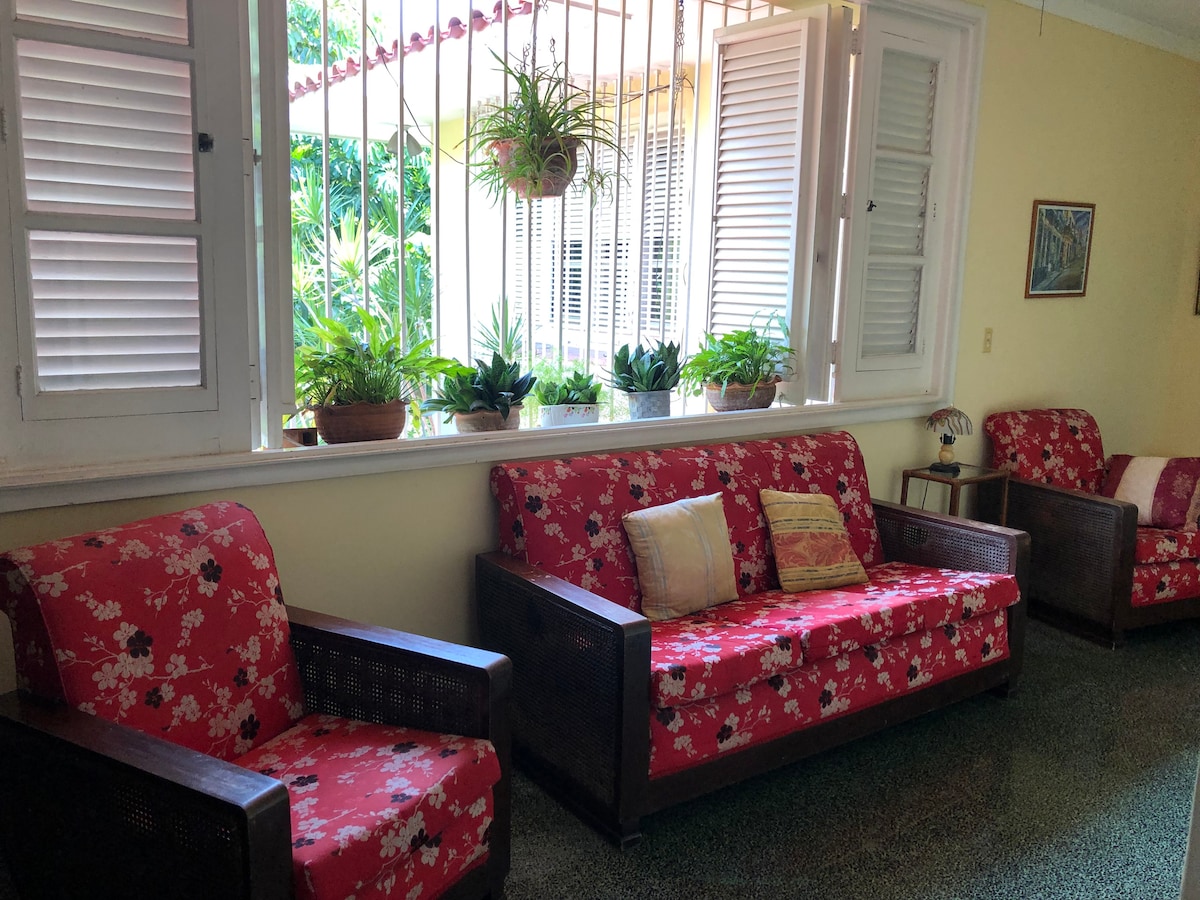 La nostra Villa Nieves costruita nel 1910 conserva la sua architettura coloniale, i suoi soffitti alti 5 m,colonne con capitelli ionici di origine greca. Situata a Vedado, centro storico della città a meno di 50 metri dalla 23esima strada chiamata la Rampa, 10 minuti dall'Avana Vecchia e 25 minuti dall'aeroporto in taxi, e 5 minuti a piedi dalla diga. È composto da quattro camere da letto con i suoi 4 bagni privati, molto spaziose e confortevoli per famiglie, coppie,bambini e viaggi di lavoro.