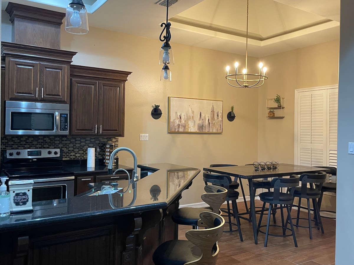 Tranquillità e comfort incontrano la funzionalità . Benvenuti nella nostra spaziosa casa, in posizione centrale nel cuore di Mission. Qualunque sia il motivo del tuo viaggio, sia per lavoro, esplorazione o ricerca accademica, il nostro alloggio ti fornirà il comfort di una casa completa per rendere il tuo viaggio e la tua esperienza nella Valle del Rio Grande (RGV) confortevole e memorabile . Rifugiati all'interno in una cucina splendidamente decorata e in un soggiorno che combina il comfort con l'atmosfera rustica di una casa colonica.