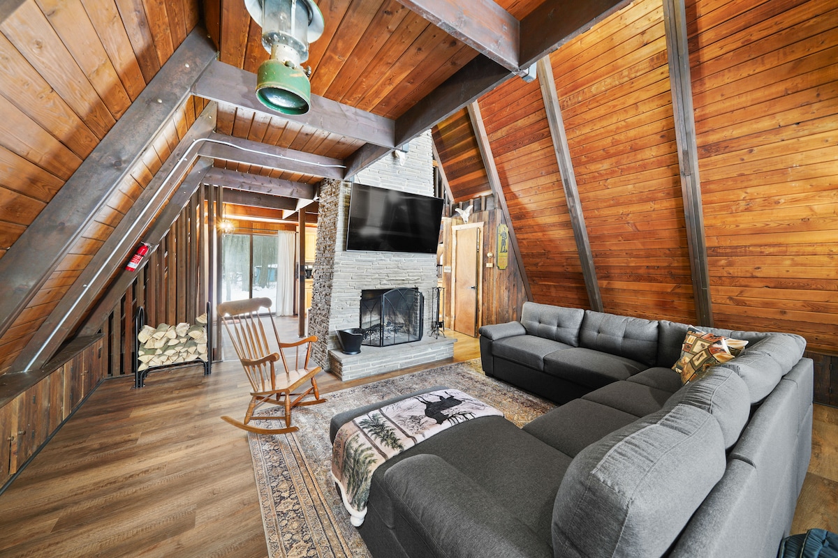 Prenditela con calma in questo spazio unico e rilassante nel piccolo villaggio di West Farmington. Questo accogliente A-Frame di 1050 piedi quadrati ti permette di rilassarti e rigenerarti in questa vacanza perfetta lontano dalla città. Riscaldati davanti al caminetto retrò: la caldaia principale riscalda bene la baita. Atmosfere divertenti con la passerella del ponte e i tanti piccoli dettagli bohémien. 5 minuti a piedi lungo una strada di campagna lungo una strada di campagna troverai la strada per raggiungere un lago tranquillo che avrai accesso a pesca/kayak/paddle boarding. Sauna/vasca idromassaggio sono calde!